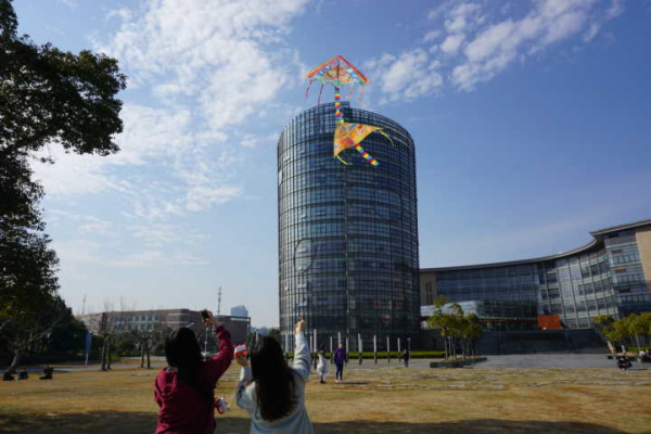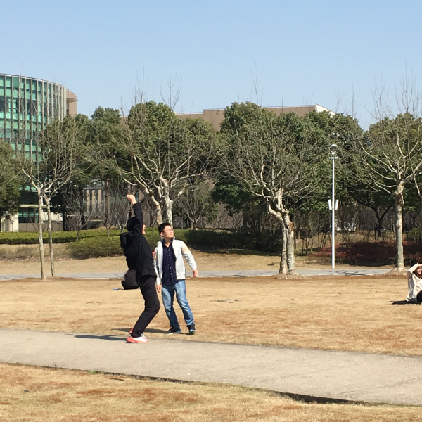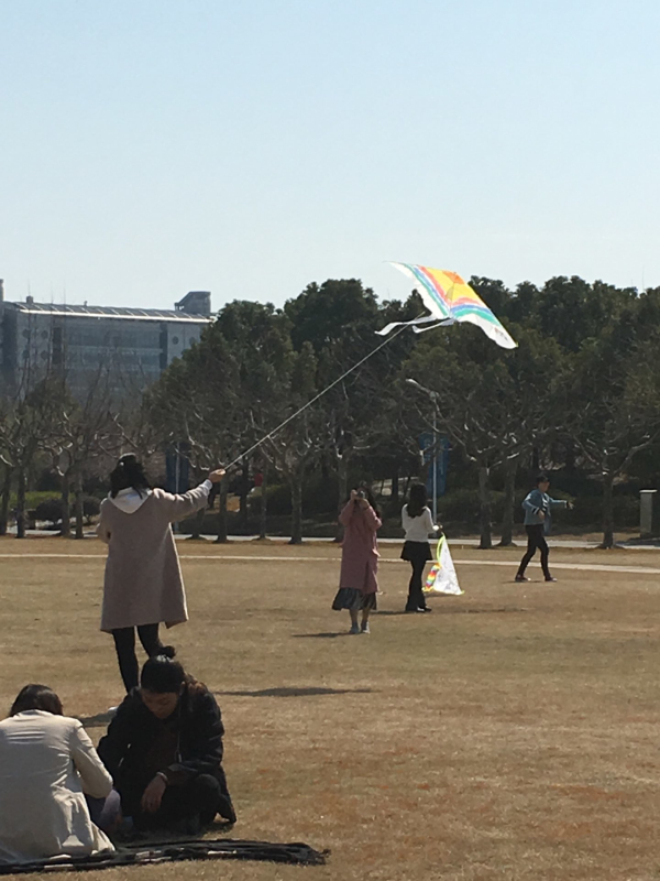 当然啦,还有心急的小伙伴选择先放着风筝热热身(还吸引了许多围观的同学拍照)