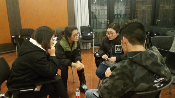 交流会于3月23日晚八点整在共享空间202准时开始。同学们按照省份坐在一起,倾听学长学姐们的经验分享。
