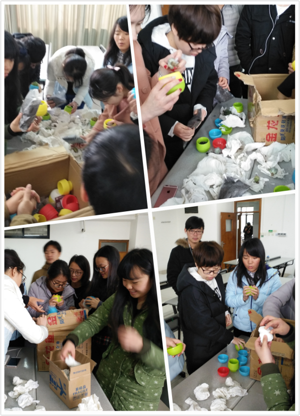 下课之后同学们就聚在了一起,开始挑选心仪的多肉植物,班委们做了充足的准备,平均每个人可以种植两盆多肉植物,带回寝室精心培养,同学们早就迫不及待了,找到自己喜欢的植物后就开始填土种植,然后用彩石来装饰。