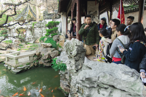 这是一个生动可感、活泼风趣的户外课堂。跟随陈老师的脚步在亭台假山、曲径石桥中穿梭,那些红漆扶栏、碧瓦飞甍,那些窗棱格子、雕花屋檐,那些你可能走过却忽略的美,都一一呈现在眼前,通过历史上有趣的故事和典故串成一线。创造艺术的目的,不是让人规范化地理解、也不是用来统一化地传授,而是一种心路历程的具象流露,更是一种涤荡身心的审美体验。