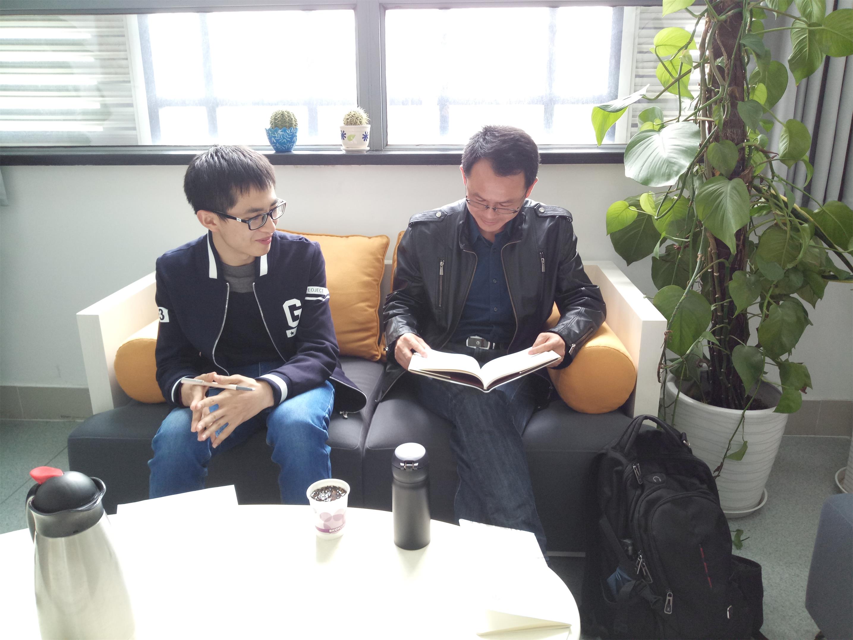 我和老师在讨论文集的内容,老师认真解答我的疑惑和问题,指导我如何读书