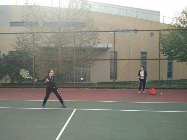 简单的热身小游戏后,我们两人一组,进行击球练习。一人负责投掷,一人负责击打,投掷者找好角度,击球者做好动作。双方的默契配合,不仅让各自的网球技能大有提高,也让二人之间那份珍贵的友情持续升温。