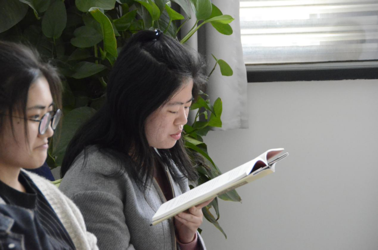 大家齐聚一堂,共同阅读,学习气氛非常浓厚。之后,由三位同学分别朗读了现代大学的三个理想——智慧的创获、品性的陶镕、民族和社会的发展其具体内容,同学们在听后分享了自己的学习体会,掌声迭起。在这一过程中,我们深入理解了现代大学理想的真正内涵,智慧的创获不仅是对知识的保守更要致力于“创造的学问”、“独创的研究”;品性的陶镕旨在注重学生在群体生活中品性的锻炼,像“发展智慧”一样“范成品性”;文化是推动社会发展的重要力量,“民族之魂,是在我们大学里反映出来的”,大学的理想最终是要助力民族和社会的发展。