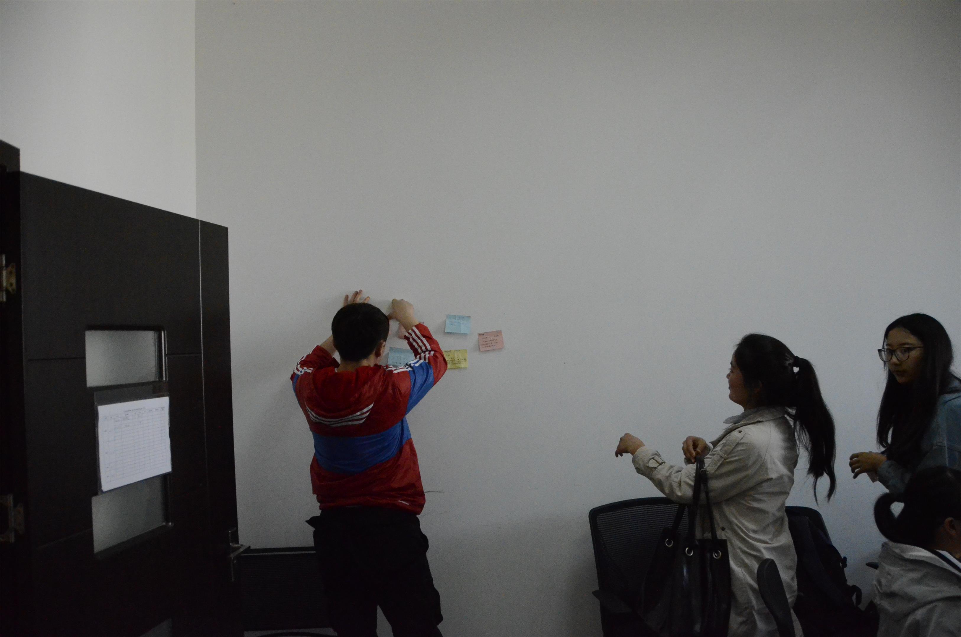 交流完全班同学的推荐书目后,张老师让每个人把自己手里的纸条贴在墙上,这样可以方便大家阅读和做笔记。