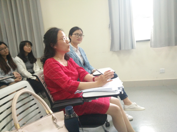 授课结束后,章瑛老师和刘佳老师都进行了细致的点评。章老师提出建议说,在提问方法上老师要多多注意,应该把台下的学生当成是高中生来对待,要学会提出让老师能回答出的问题,调动学生的积极性,避免陷入自说自话的尴尬局面。在内容上,要注重对教学重点和教学难点的讲解,避免总是条条框框的枯燥,要利用学生感兴趣的点切入教学内容,举例上也应该更为严谨。在课堂小练习上,题目不宜过多。从更高层次上讲,政治课应该具有育人的功能。