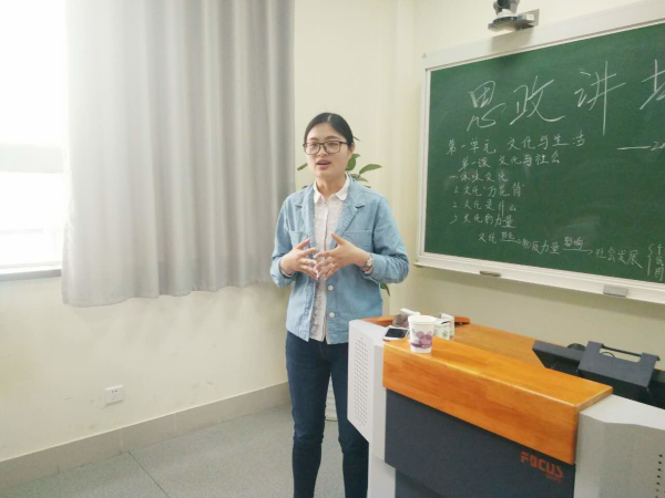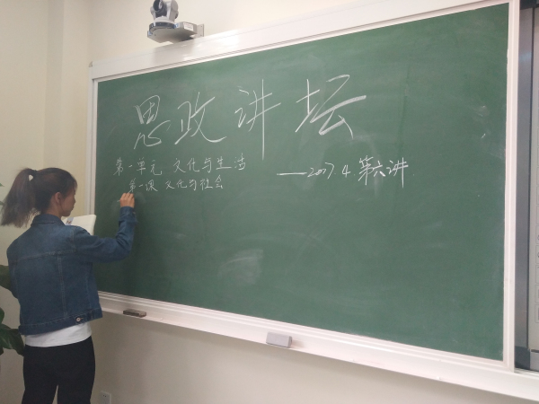 段老师此次带来的是《文化生活——文化与社会》的内容,在讲课开始之初,段老师就在黑板上书写板书,开始教学前的准备。接着,她简要回顾了经济生活和政治生活的授课内容,再以丰富多彩的图片来展示文化现象无时不在、无处不在的特点。引出对于文化的定义,文化的功能等相关部分,在授课过程中与同学们互动良好,教态自然大方。