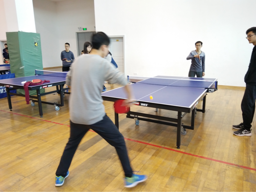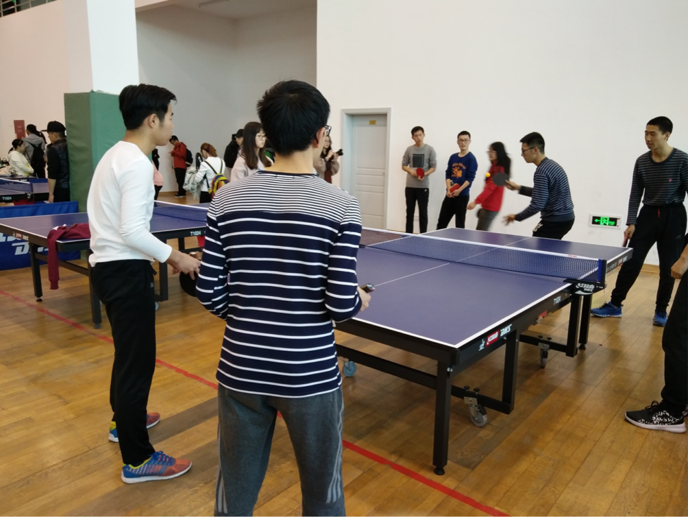 男乒首战物理学系,对方的实力不容小觑,第一场就被对方来了个下马威。第二场比赛我方选手李龙章轻取对手;第三场迎来了双打,在我方选手黄银强的快攻和钟圣贤巧妙的发球之下,对方几无招架之力;最后一场历经激烈的角逐后我院以3:1战胜了物理学系,迎来了男乒团体第一场胜利。