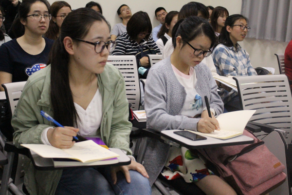 在中文专场上,陈子旺学长以独特的授课风格讲授了《过秦论》。学长以清晰易懂的折线图展现了各国的力量变化,梳理文章主要线索。学长的讲解细致且不失重点,用字词引出文章内容及观点,鼓励大家结合文本进行理解,在互动中迸发思想的火花。另外,学长借助课外拓展的知识帮助同学们开拓视野,加深对文章的见解。学长张弛有度的课堂节奏给同学们留下了深刻的印象。