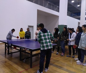 为响应习见平总书记呼吁青年肩负时代责任,高扬理想风帆,做六好青年的号召,以及丰富我班同学们的课余生活、促进广大同学的身心与智力的健康发展,打造健康和谐的体育文化氛围,2017年4月13日18点,16级化学师范班在校乒乓球馆组织了一场激烈的以乒乓球赛为主题的团日活动。班级同学四十余人以小组为单位,以单打的形式展开,现场气氛活跃。