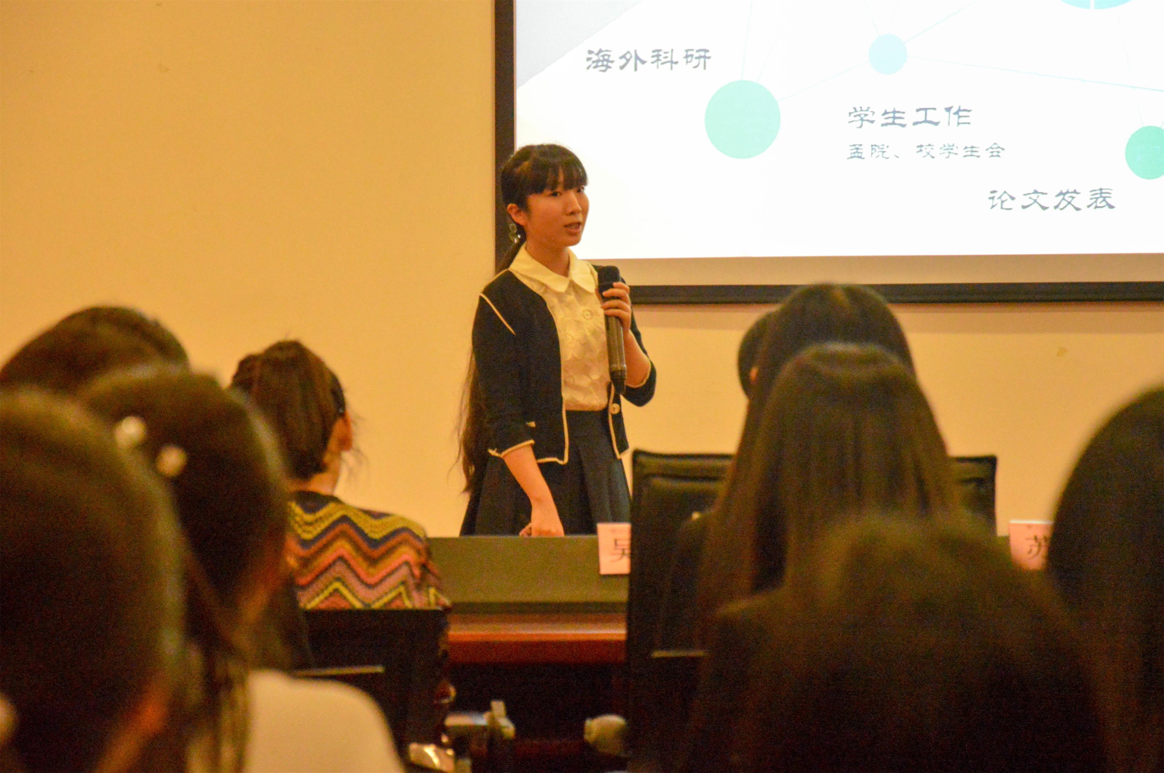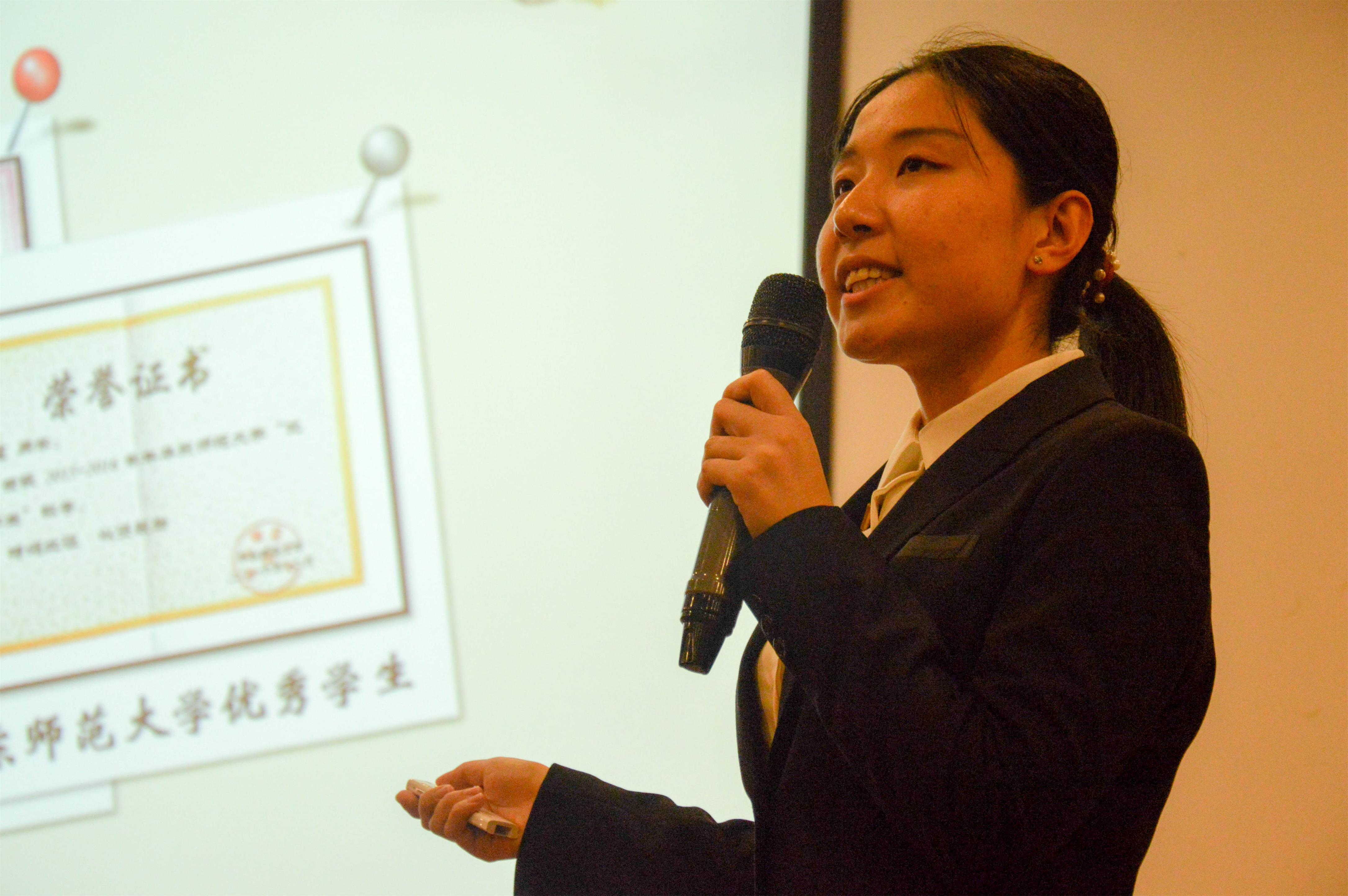 “不忘初心,继续前进” 是来自化学专业的陈茹婷的演讲主题,作为孟宪承书院团学联副主席,生涯发展中心主管,无论是科研经历还是社会实践她都能游刃有余。她的目标是做一名优秀的化学教师乃至未来卓越的教育家。