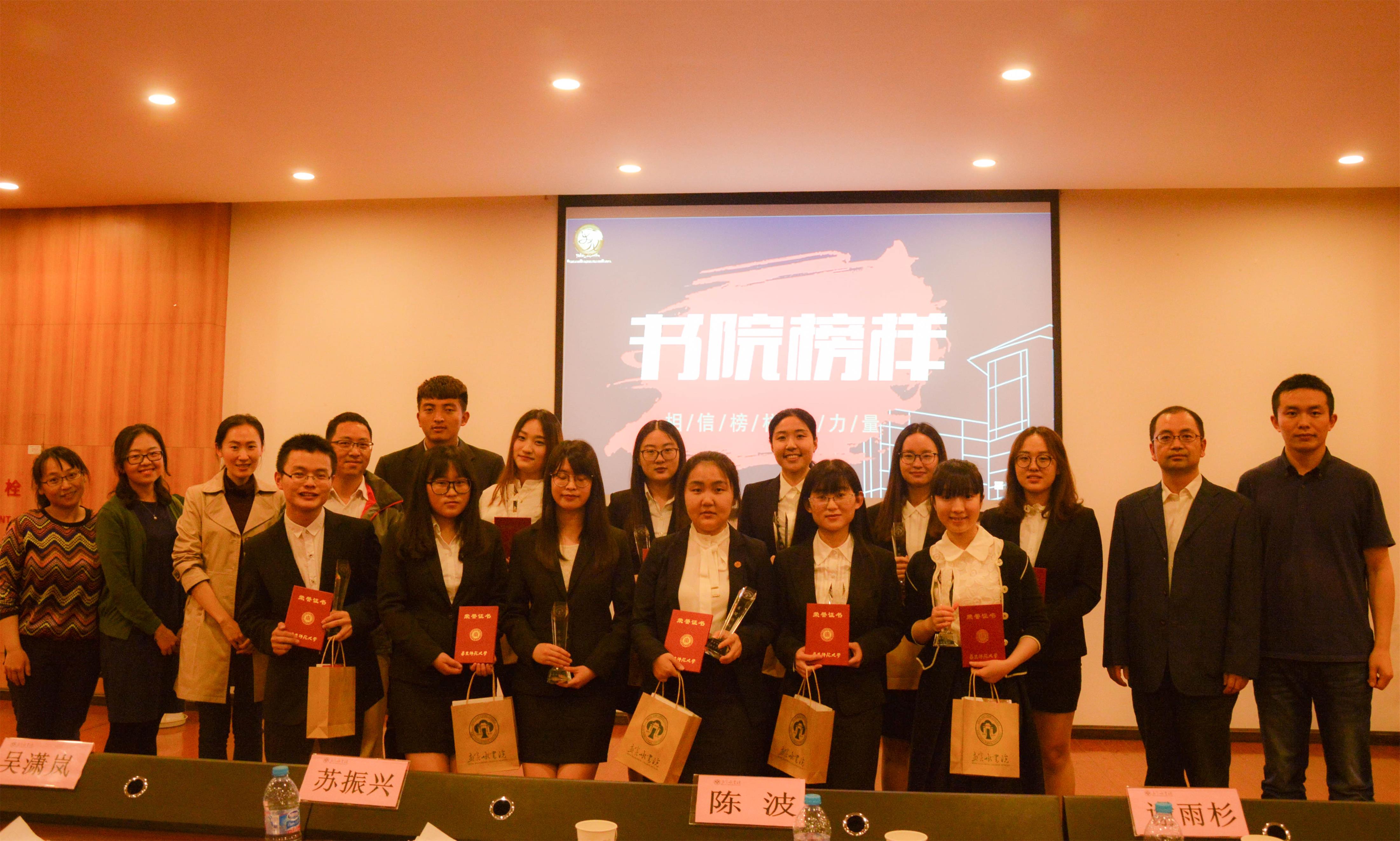 最后,八位候选人及两个团体获得2016-2017年度孟宪承书院“书院榜样”荣誉称号。评委老师为获奖选手颁发证书,合影留恋。