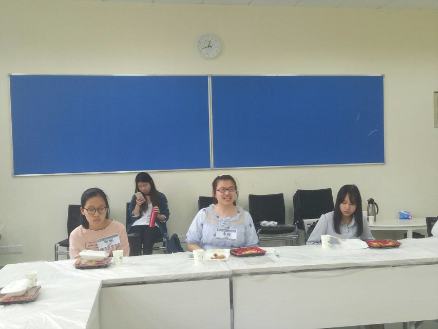 午餐会刚开始,杨老师为了让同学们活跃起来,提议大家从轻松的事情聊起,问到了大家的五一假期的计划,然后生涯大赛午餐会正式拉开序幕。谈到在生涯大赛中的收获,张阿芳同学表示自己以前对规划的概念理解十分浅显,以为只是列出要做的事,但是在生涯大赛中才明白规划的真正含义。同时也学到了在一件事中融合几个小目标,也要思考自己的目标的实践性。而邱娴同学说自己在生涯大赛中收到许多学姐学长的帮助和激励,也见到许多十分优秀的同学,他们激励着她尽力而为,继续向前。李甜同学则说到其实在参加比赛的过程中感到十分迷惘,不知道是否该继续,但现在想起来十分庆幸自己坚持了过来,参加这个比赛是有意义的,而不是只有失望和失败。