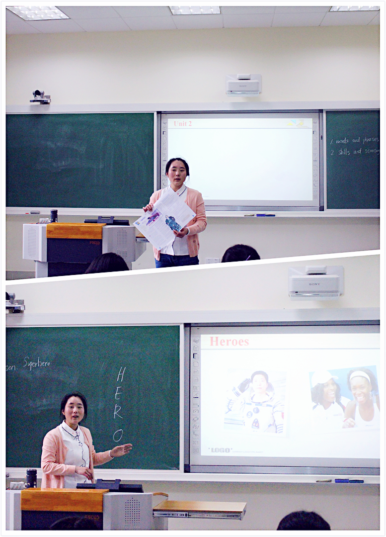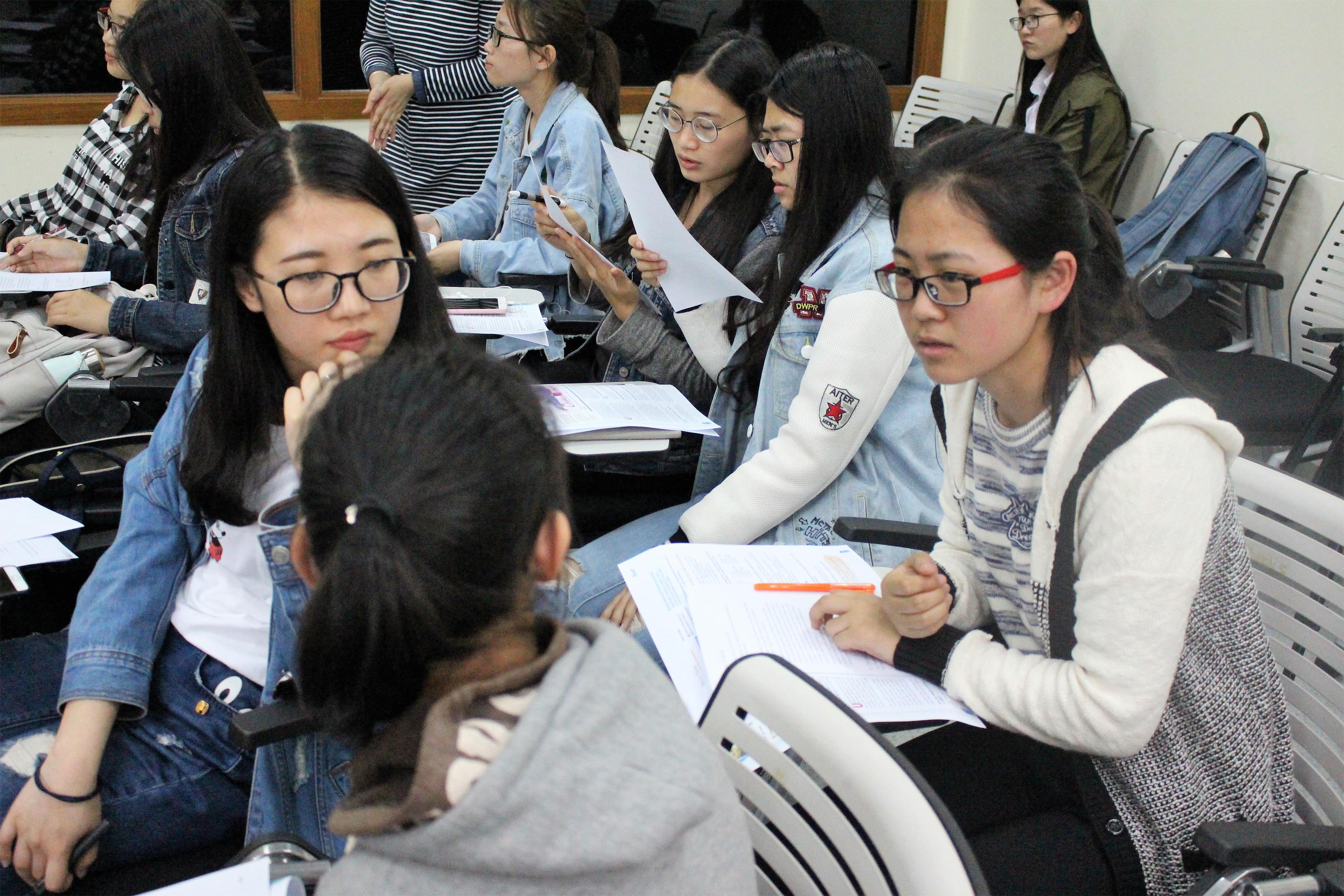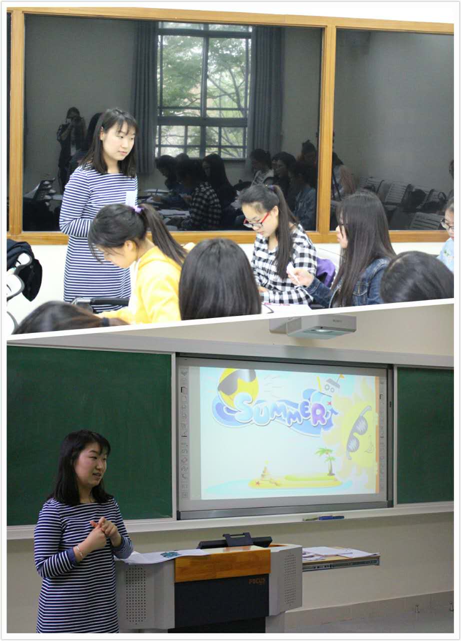英语专业首先登场的是13级英语专业优秀师范生——樊璐瑶学姐,她为我们带来了一堂与饮食习惯有关的精彩授课。在授课过程中,樊璐瑶学姐不仅巧妙设计了讨论环节,活跃课堂氛围,而且通过阅读和演练相结合的方式,让同学们加深了对课堂内容的理解。