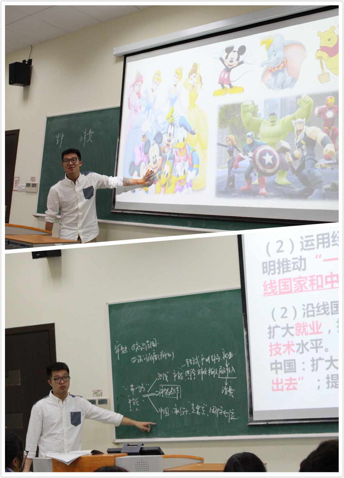 接下来是赵钰宁学长。学长将此次示范课分为两个部分——新课和习题课。介绍新课——人教版课本中《发展生产,满足消费》的时候,学长以“一个赵小六的故事”连起了整节课的内容及知识点,通过幽默的语言及与学生的互动把持着整节课欢脱的氛围。而针对习题课。学长对全国卷高考主观题进行了问题的分析及讲解,并向我们介绍未来应该如何对学生讲解题目,让同学们站在授课者的角度进行了思考。