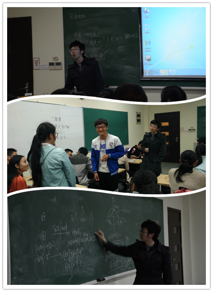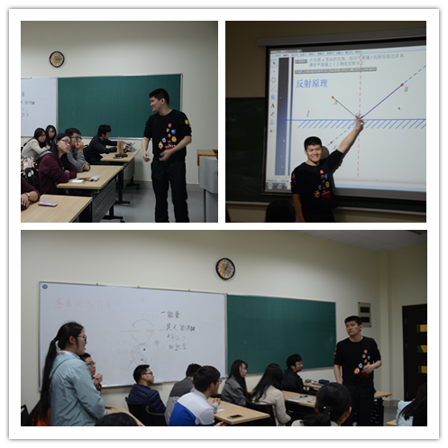 数学专场上,辛昌学长以别开生面的授课方式给同学们留下了深刻的印象,,借助音乐和诗歌解释了抛物线中的几项基本定义,帮助同学们理解认知抛物线的相关内容。杜金金学长以不同风格,展现了同样的精彩,学长向同学们展示了示范课和日常的课程应当如何讲授,还借助游戏来提出了距离和角度的概念,同时强调授课时要与学生有最大限度的互动。课堂上,学长们神采飞扬,同学们也沉醉其中。