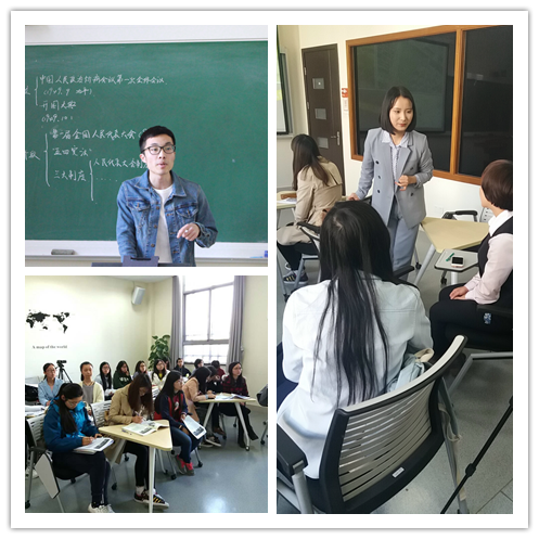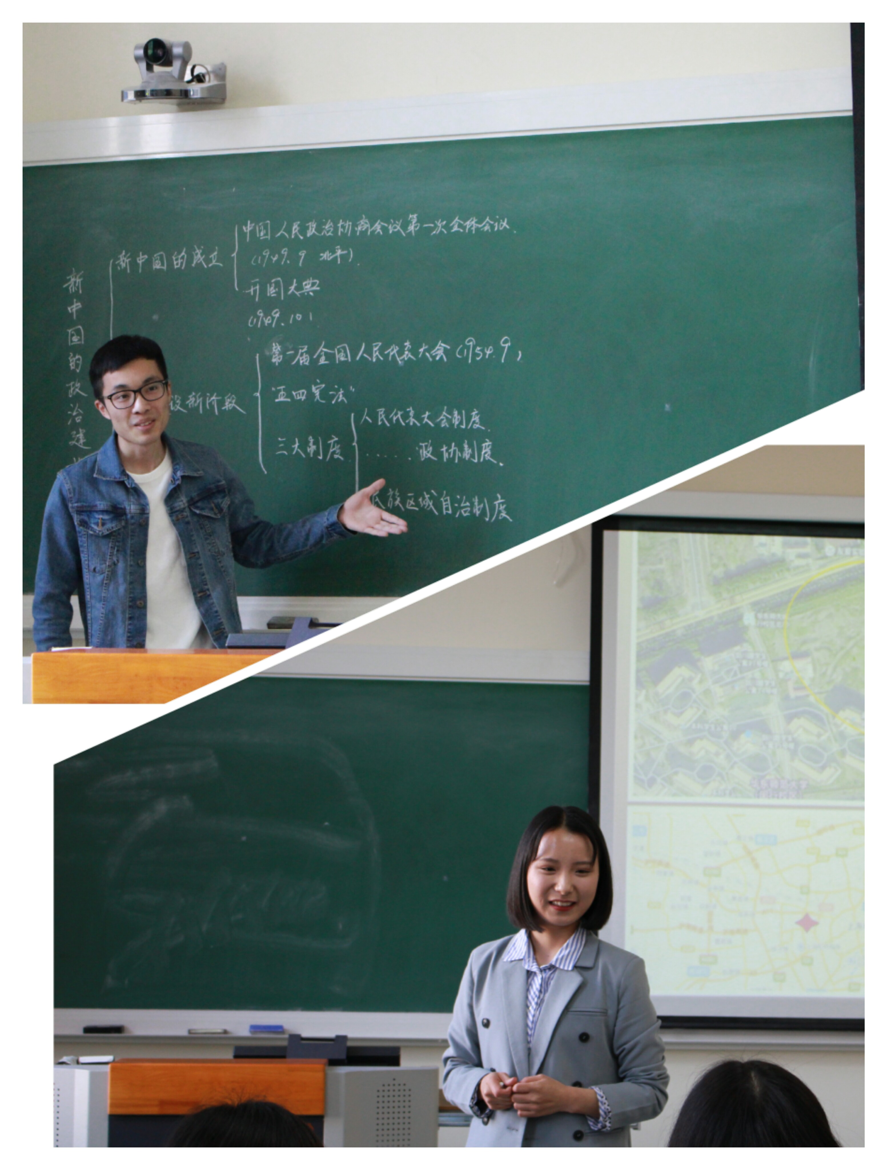 在同学们的掌声中,历史地理专场的学姐学长也迅速进入自己的课堂。历史专业的胡家成学长讲授新中国的政治建设。简洁的ppt、全面的专业知识及条理清晰的板书,再经由学长口吐莲花,即使是难懂的课题,也变得易于学习。地理专业杨珊学姐以独特的授课风格展示自己曾获晨星杯一等奖的参赛作品--农业区位,借用视频和实例讲授推动课堂讨论和互动教学,实现让学生成为课堂主人的教育理念。