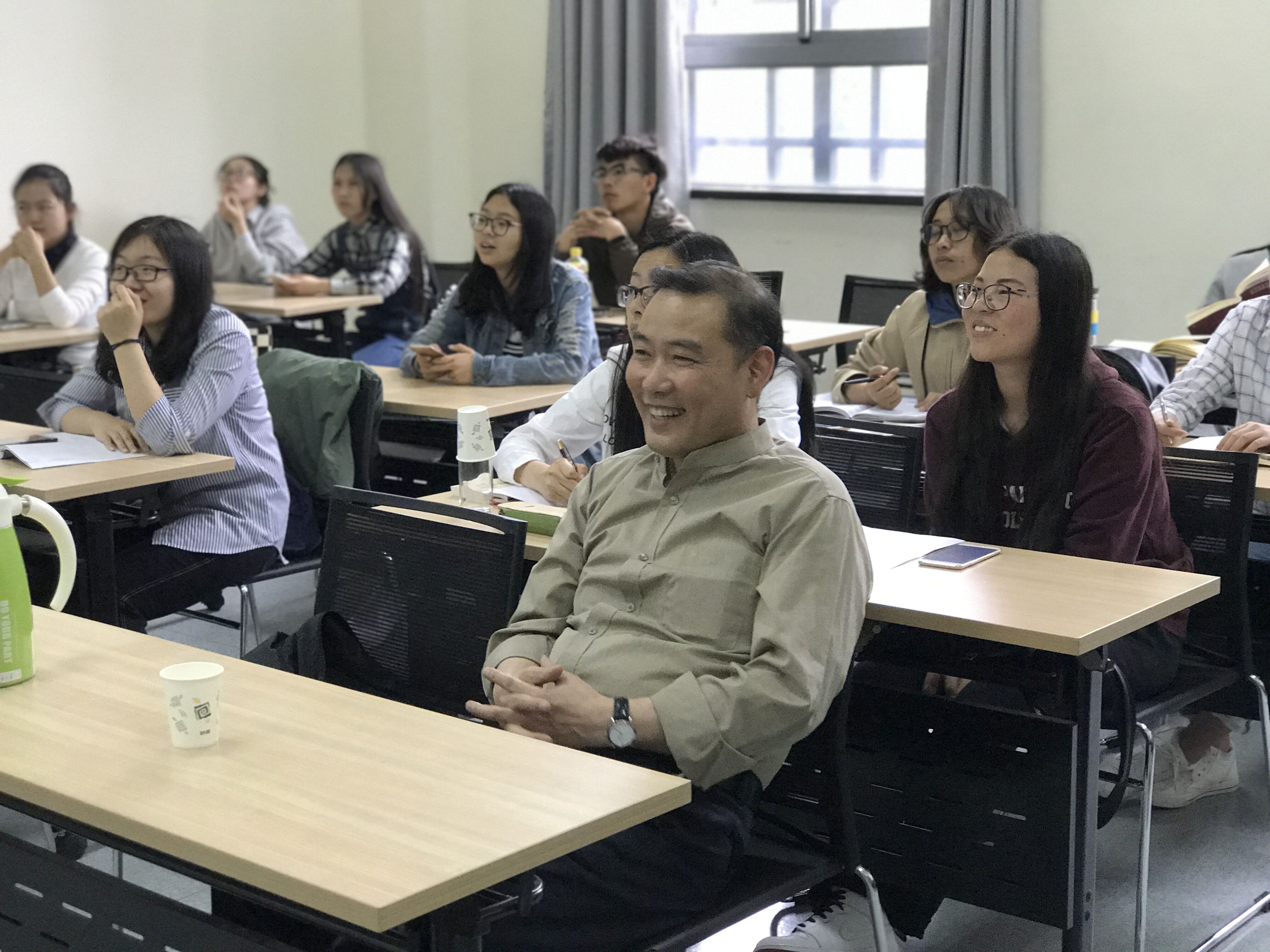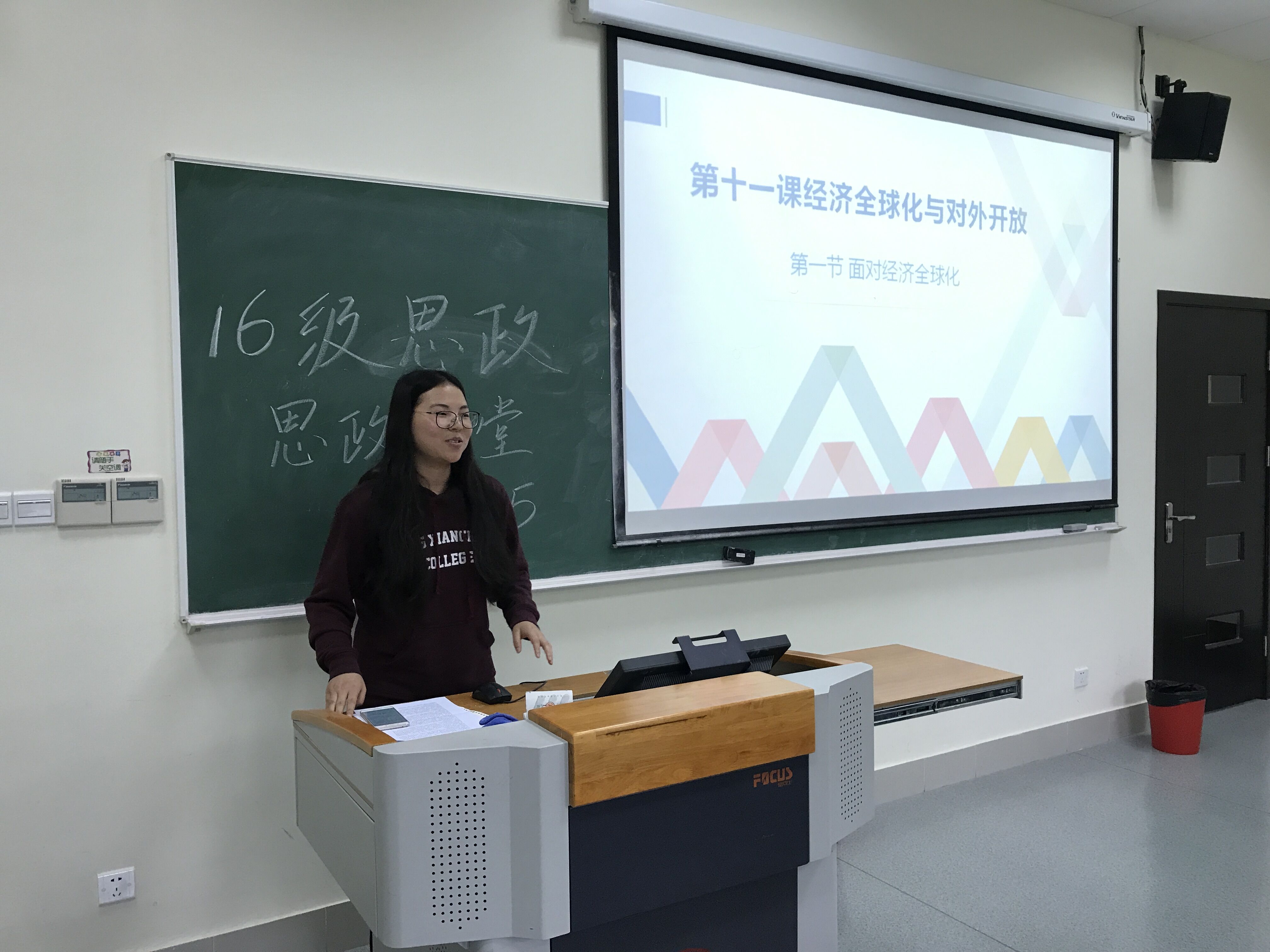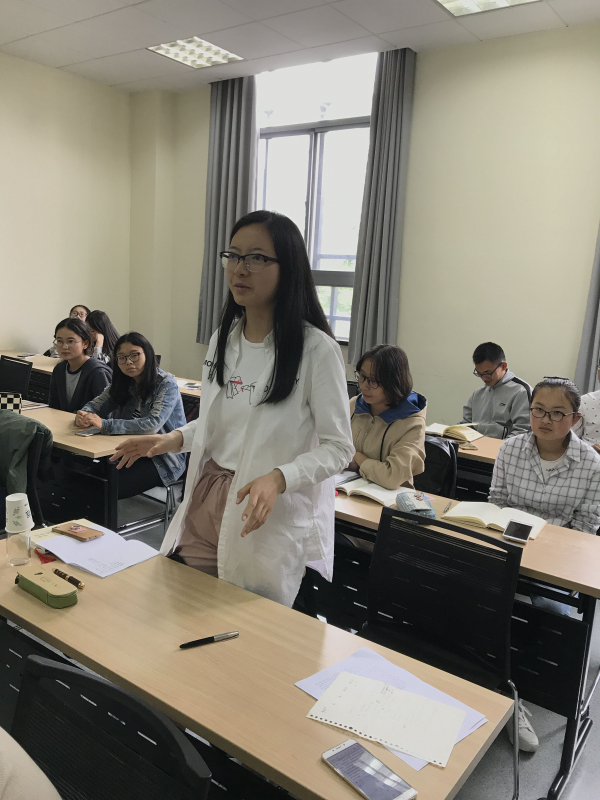 今天天气比较阴凉,微风习习,由唐爽同学担任此次思政讲堂的主持人。同学们早早地来到共享空间,在教室里静待授课的开始,整个场面充满了求知求学的严肃与认真。此次的评委为叶王蓓老师和黄建军老师。两位评委一前一后地坐者,仔细聆听同学授课并提出宝贵意见和建议。本轮活动分别由王燕、陈晓云同学为大家讲课。