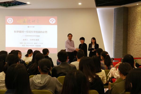 讲座伊始,马学鸣老师向同学们介绍了科学、反科学、伪科学的定义,并从欧洲文明概述、资本主义萌芽带来的契机、文艺复兴为标志的思想解放运动、科学的独立抗争等四个方面介绍了科学发展的历程中受到的反科学挑战以及科学对此做出的抗争。