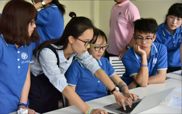 迎着明媚的阳光,营员们首先在20号楼门前集合并签到。根据分组游戏的规则,营员们通过工作人员的提示寻找属于自己的颜色手环,扫描手环上的二维码获得其他组员信息,然后规划路线寻找自己的组员。