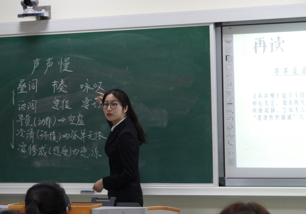 汉语言文学专业的宓琦超同学,浅吟低叹,带领台下观众与评委走进了《声声慢》中词人于残秋所见、所闻、所感,愁上心头,余味无穷。思想政治教育的杨迪同学充分展现了其扎实的理论素质基础,由浅入深地讲述了哲学的基本问题,从容不迫的教姿教态也得到了评委的一致认可。来自历史专业的杨楚银讲解了“世纪之交的世界格局”,从最近的“英国脱欧”事件入手,由今日之事,漫溯历史沟渠。