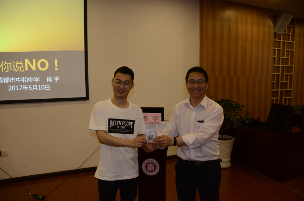 不经意间一个多小时的时间,在与肖宇学长的分享中悄然流逝,与会的同学仍是意犹未尽。书院副院长苏振兴老师对此次会议作了总结发言,并代表着书院感谢肖宇学长能够回到书院,与学弟学妹分享就业经验,并且赠送了肖宇学长书院新设计的毕业徽章。感谢学长的到来与指教。作为书院的一份子,我们都将秉持着“荣耀书院,闪耀师大”的口号,练就自我,为未来添彩。