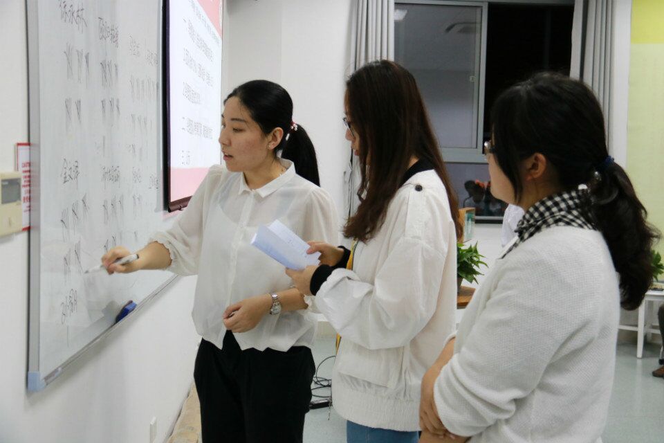 第三位同学马宝龙刚结束自己的教师技能比赛就立刻赶来参加本次竞选,他服装正式,在白板上画出三角形为大家讲述了成长、人情和规则的关系,并通过这三者的关系来阐释自己的工作理念和构想,他的讲述娓娓道来,既有思想深度有浅显易懂,很好的展示了自己,赢得了大家的认可。