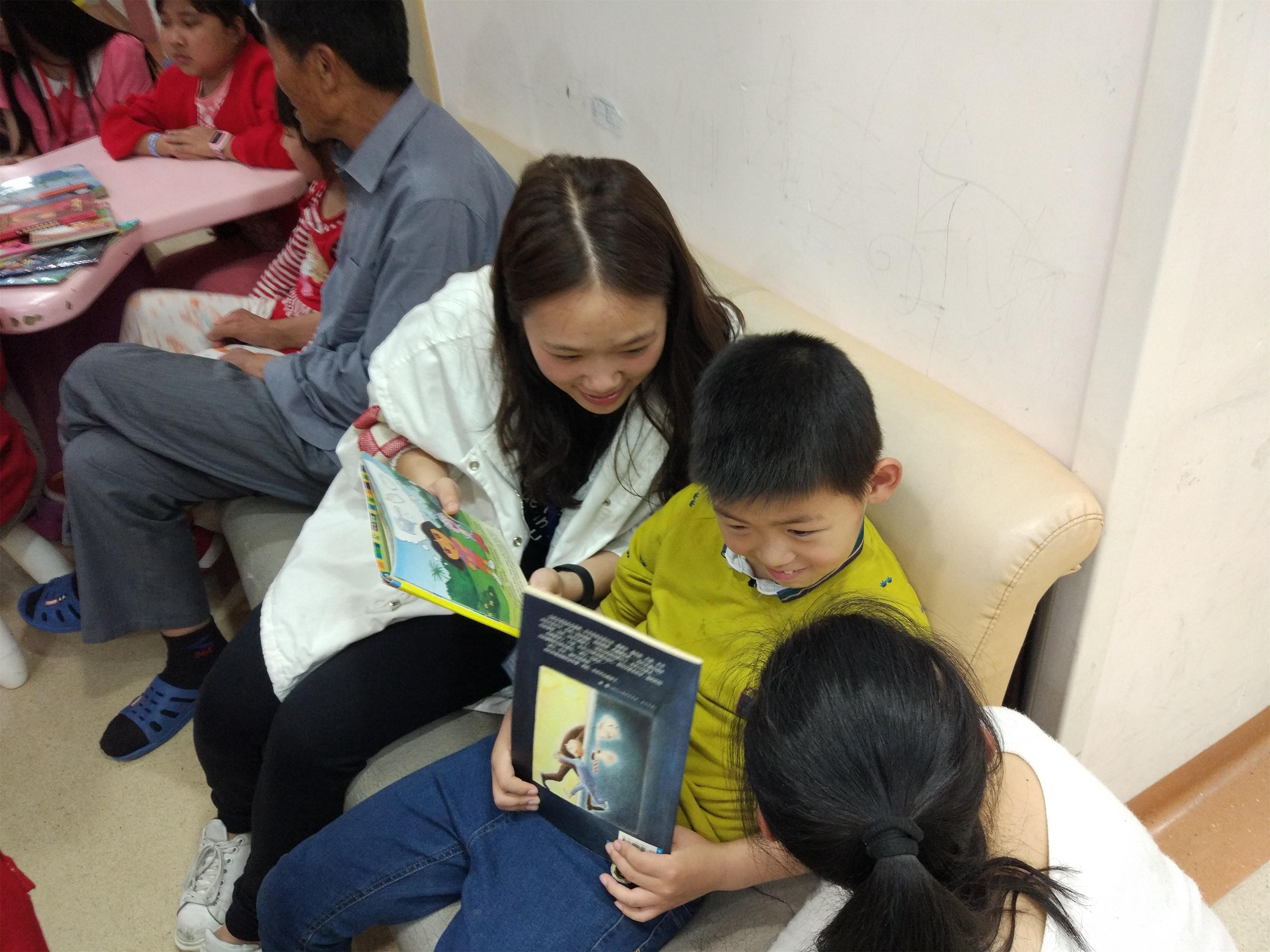 我们的来到,让他们十足欢欣雀跃了好一阵。在志愿者声情并茂的讲述中,孩子们走入了一个没有打针吃药的日常,只有童话镇和动物乐园的奇幻世界。平日里因腼腆而彼此没有交流的小病友们也在我们的活动中成为了好朋友,而有些小朋友迫于身体原因不能下床,更是表现出了无法到爱心图书馆参加活动的遗憾。那一张张稚嫩的小脸满是渴望的神情,又怎能不令人动容?我们静悄悄地走到他们的床边,带去了春天的熊和公主的城堡,让他们得以在病房里也能感受到大千世界的奇幻和美妙。