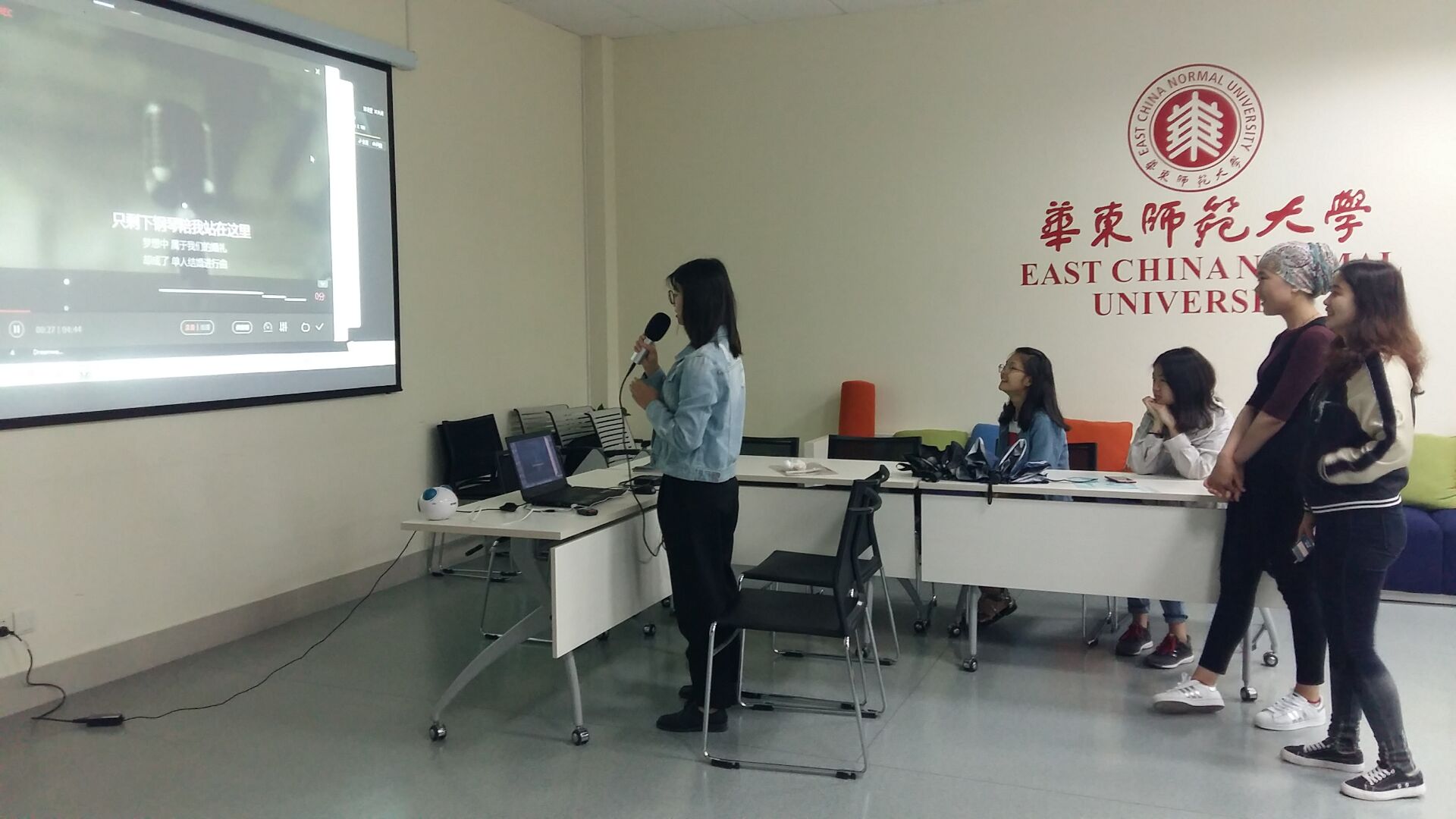 一位同学为完成任务到隔壁房间演唱