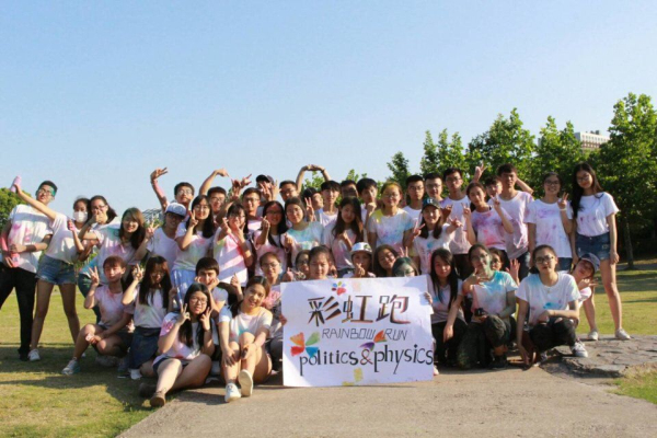 2017年5月22日下午,虽然天气有些炎热,但是依然遮不住大家的热情。为了能让久伏案前的同学们走到阳光下,体验青春彩虹般的魅力,同时加深物理专业与思政专业学生之间的互相了解、互相认识,两个专业的学生们相聚在华东师范大学闵行校区图书馆的门口草坪上,开展了物理-思政专业联谊暨“彩虹跑”团日活动。