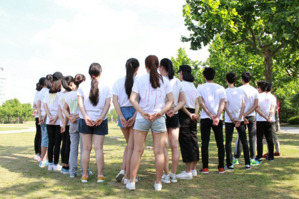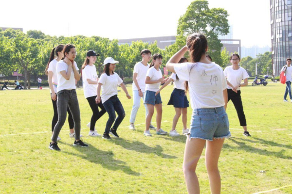 活动一开始,同学们先分组进行了自我介绍,并且给自己的小组构造了一个独特的标志。大家在这环节中创意满满,第一、三小组在背后写着一(或三),第二组在肩膀的位置画了一个象征“耶!”的手势,第四组则是在背后写了一个帅字。