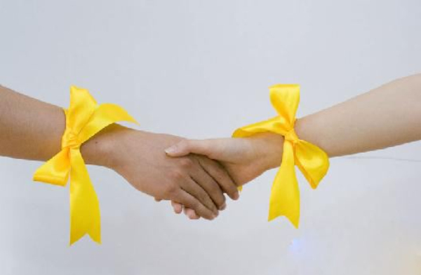 为你系上一条小小的黄丝带,金色的黄丝带飞扬于你的手腕,愿你无论行至何处,平安与你相随,快乐与你相随。