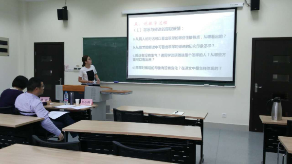 第三组的陈韵陶同学,她的教学设计非常合理完整,而且将《琵琶行》这篇课文设计得非常具有趣味性,很能吸引人。听过她的教学设计之后,非常期待这样的设计可以投入实践。