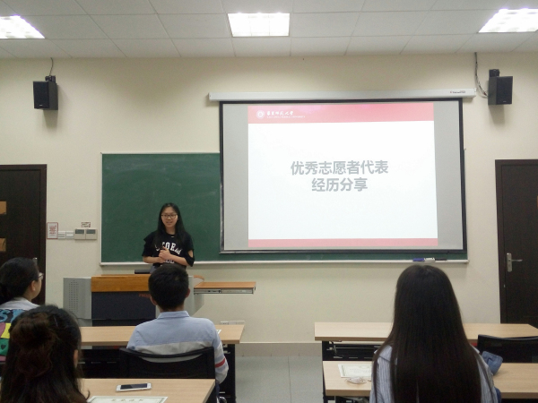 20:30,在主持人简洁的开场下,表彰分享会拉开了帷幕。随后,沙炜娟老师进行了讲话,沙老师说,博物馆的反馈表示,我们的志愿者都很努力也很认真负责,体现了我们华师大的风采,对志愿者们给予了肯定和鼓励。