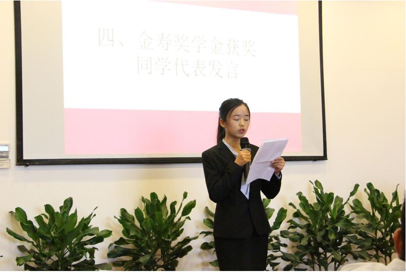 金寿奖学金获奖学生代表李海萍同学分享自己的故事