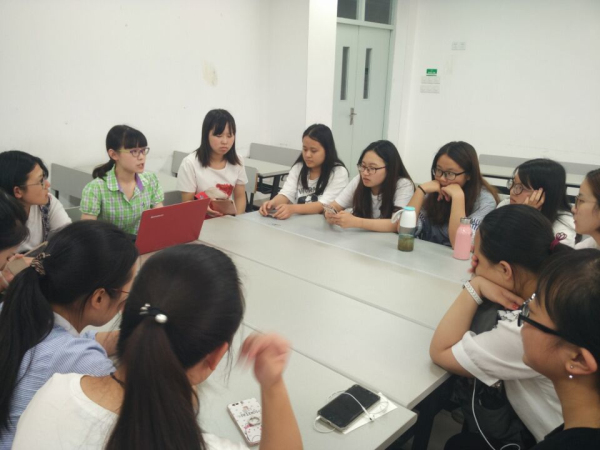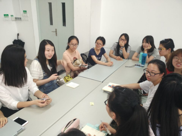首先,主持人先为大家介绍了三位学姐,并安排分组。随后每个小组围坐聆听学姐们的学习上的经验。