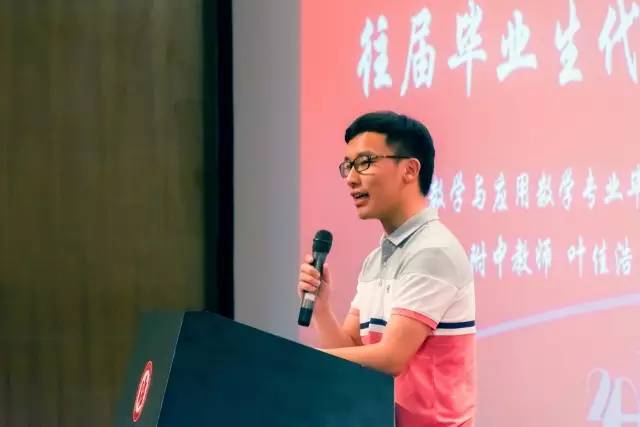 孟宪承书院2016届数学与应用数学专业毕业生、复旦附中教师叶佳浩,也来到毕业典礼的现场,为即将踏出大学校门的学弟学妹们送上祝福,向毕业生们讲述自己入校的梦想以及未来面对的挑战,更向毕业生们传递着师范精神与责任。