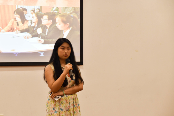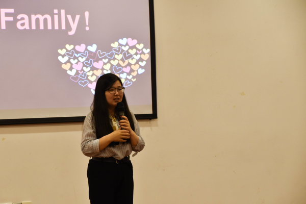 焦艳老师用饱含深情的话语道出因我们的成长而高兴的心情,也诚挚地祝福将要离开中心的“家人”。他们虽然没有办法在接下来的时间里再陪伴中心,但心里都留存有在中心的记忆。同时,主管与部长也总结了干事一年来的工作成果,他们表扬了干事们不怕辛劳,认真工作的态度,也感谢了干事们对中心工作的付出与坚持。