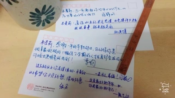 游戏结束后,张余同学作为新一任党建工作中心主管总结发言。她既对为党建工作中心辛勤付出的全体成员表示感谢,也向大家表达了她会认真管理党建工作中心,担负起切实责任的信心。最后是暖心的活动留念环节,一句话,千分情。大家在一起相互传递明信片的同时也在传递着对彼此最真诚的祝愿。