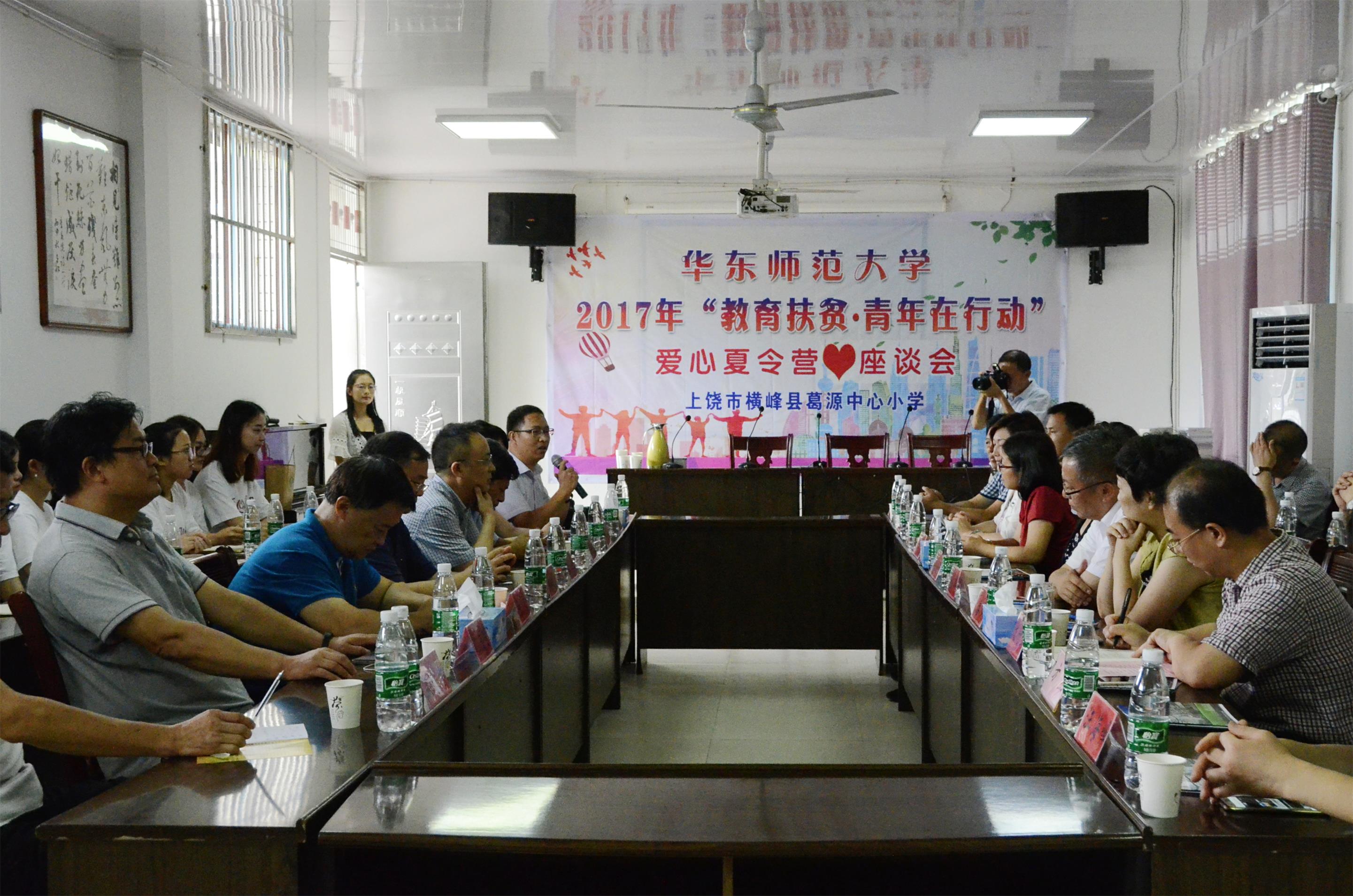 参与此次座谈会的还有:上饶市教育局局长侯小仙,副局长王美,横峰县副县长王芳,县教育局局长戴邵峰,葛源镇党委书记幸峰,华师大孟宪承书院实践队指导教师益建芳,葛源中心小学领导、教师代表等。