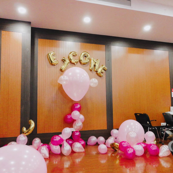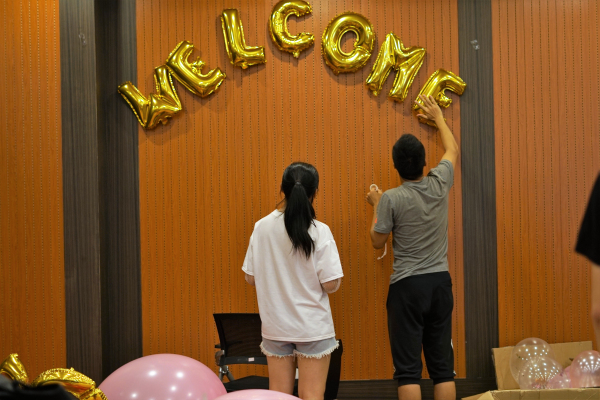 在社长的带领下,经过了一中午的布置,影协成员们为新生精心地准备了温馨的拍摄环境。大小不一的气球摆在周围,字母“welcome”贴在墙上,中心的巨型气球让人爱不释手。成员们希望现场的精心布置能够吸引新生的注意,让更多的新生关注影协,加入影协。