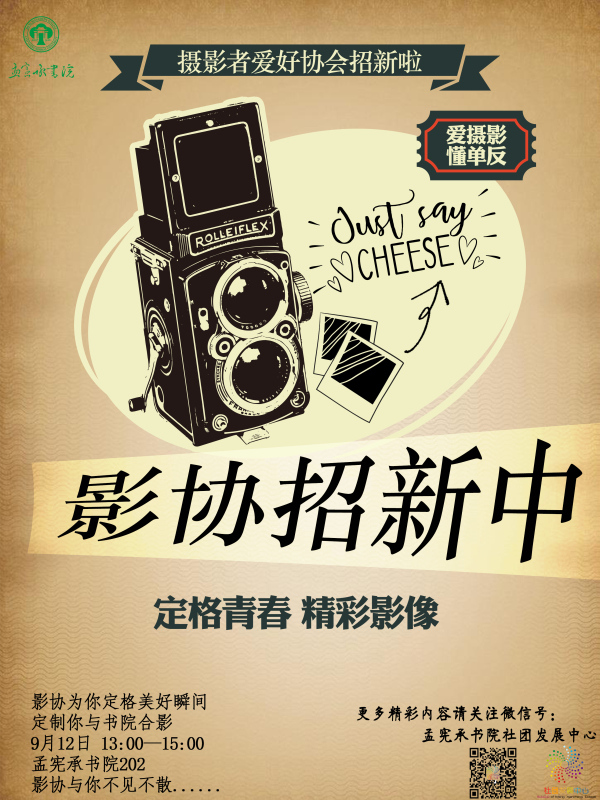 下午三点,摄影爱好者协会招新圆满结束。最终,影协迎来了29名新鲜血液。希望他们能在影协中学到摄影知识,不断提升,未来的他们必将成为影协的中流砥柱。