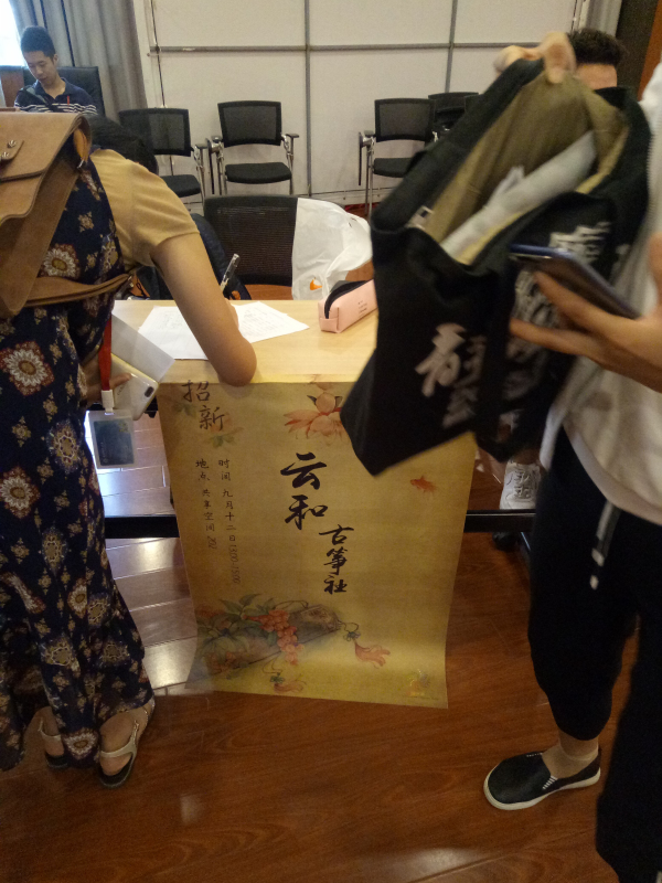 2017年9月12日下午15:00,由社团发展中心举办的2017年度的社团巡礼在共享空间202拉开了序幕。2017级的新生们怀着憧憬与好奇,为社团巡礼的现场带去了满满的热情与活力。俗话说:“酒香不怕巷子深”,云和古筝社虽然在最后一个摊位,但仍然用自己的独特韵味吸引了大批同学前来围观。
