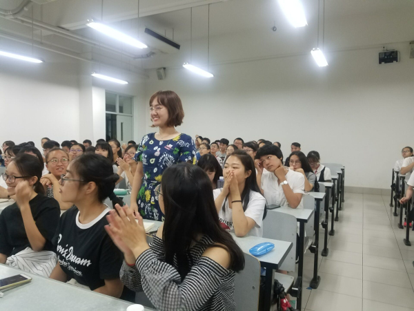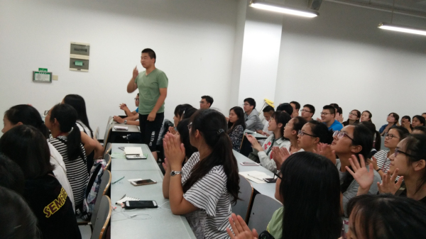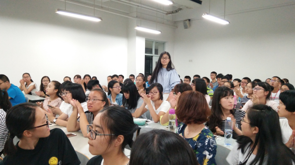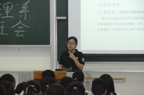 在介绍过程中,同学们听得很认真,面对全新与未知的一切,同学们有疑惑,有不解,他们积极地提问,一时间教室内气氛活跃,伴随着阵阵笑声。讲到学业问题时,助导鼓励大家要学会充分利用学校的各种资源,自我学习,自我管理,自我规划,度过充实而又愉快地大学生活。