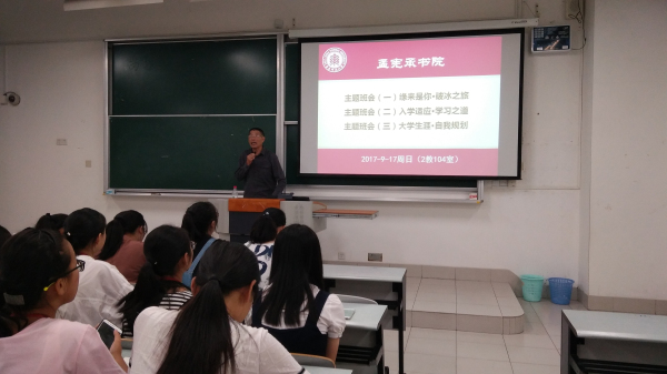 迎新工作接近尾声,为了帮助新生尽快适应大学生活,2017年9月17日晚上六点半,17级地理学科专业在二教104召开主题班会,并进行了学风教育。