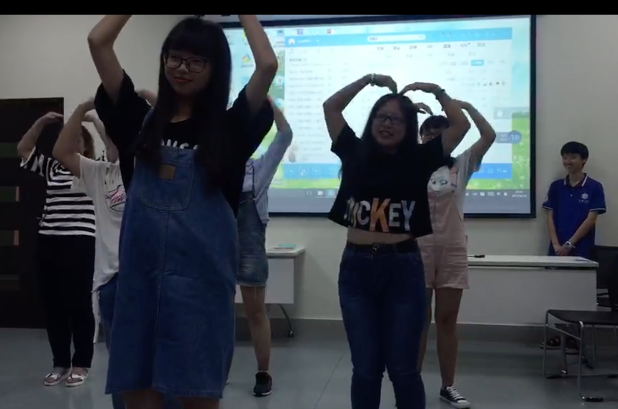 接下来就是老成员送温暖阶段了,她们表演了上学期学习的可爱颂并配了萌到“羞耻”的舞蹈。舞蹈让大家都欢笑的同时,不少新成员表示十分想学,给日后韩语小组学习活动开了个好头。