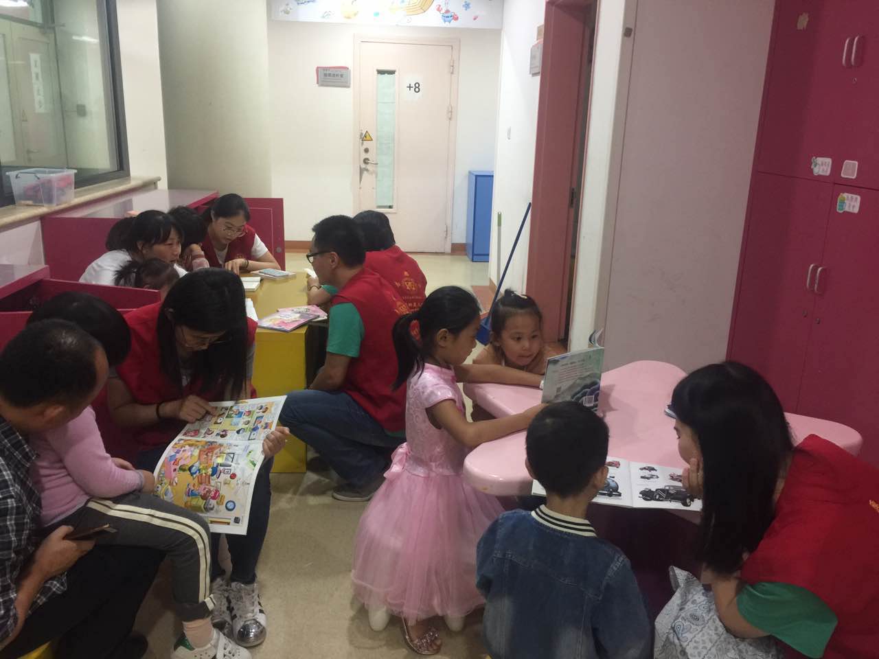 小小的图书角,挤满了平时不能出来活动的小朋友们。和他们打完招呼,志愿者们正式开始了工作。