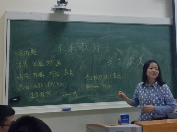作为未来的人民教师,师范生应该具有良好的职业道德、学科知识、教育教学能力,还要能成为研究者,对自己的工作具有反思态度和积极探索能力。因此在2017年10月19日下午6:30,15级化学专业的同学齐聚共享空间208举行了以“未来教师之美益求美”为主题的团日活动,希望通过此次活动,同学们能够加强自我管理,提高自身要求,增添个人魅力,也为成为一名优秀的化学教师打下基础。