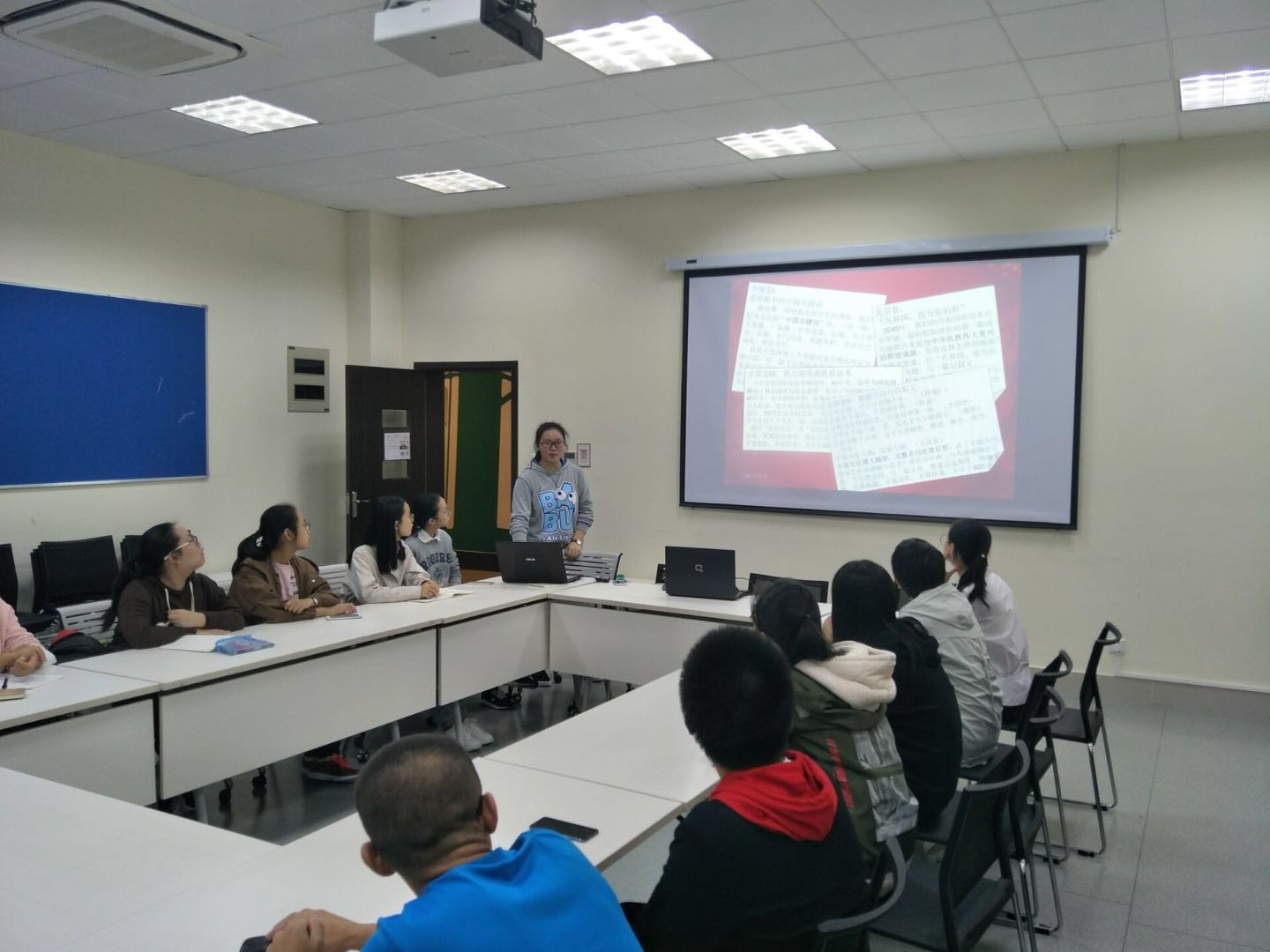 团支书向大家介绍党史