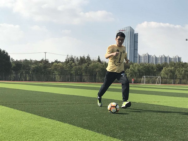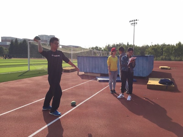 足球在运动员脚下灵活的滚动,精彩多又多;实心球在手,选手动作到位,完成了漂亮的一掷。