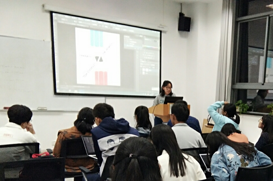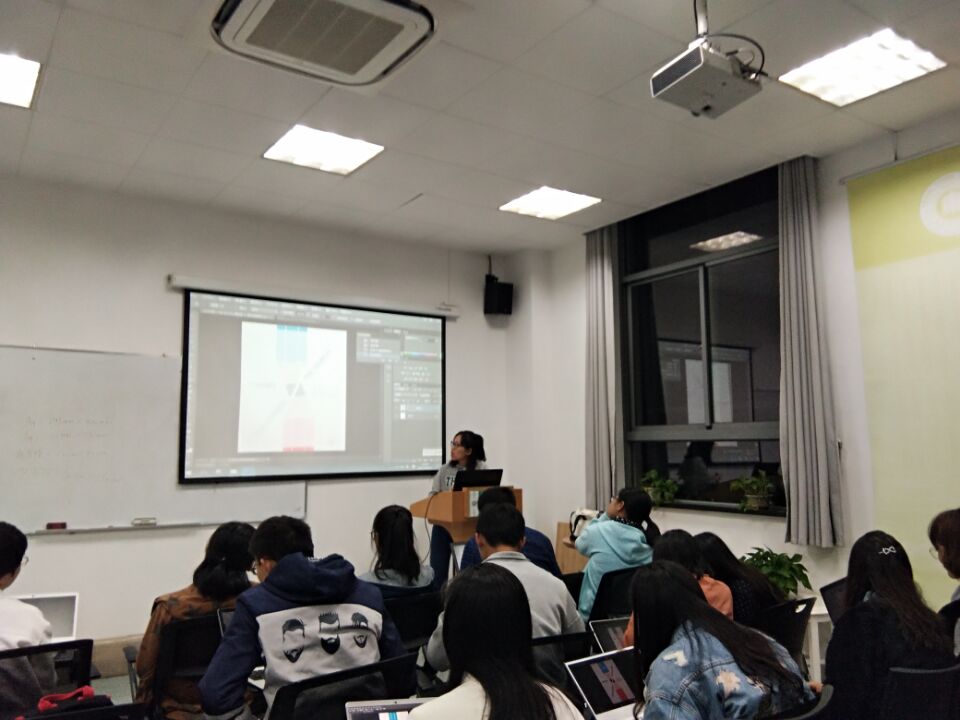 之后邱娴部长讲解了如何在网上下载字体,并且简要说明了字体的特点要求,为小干事们日后选择字体支招献策。最后还对图层的各个用法进行了详细的解释。大家聚精会神,认真听着部长的讲解。